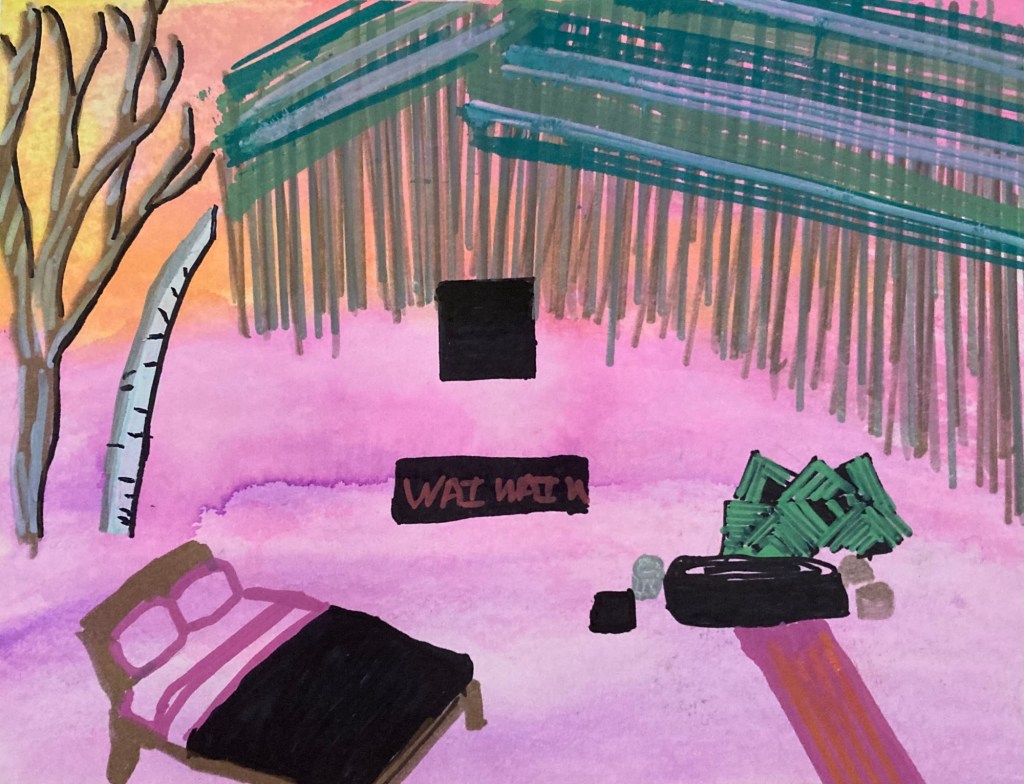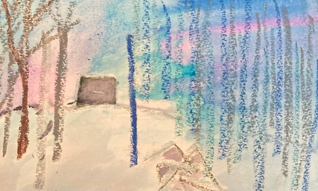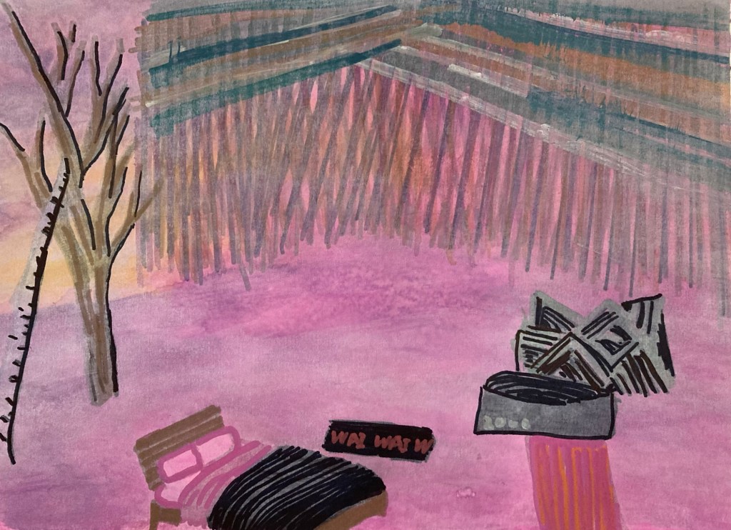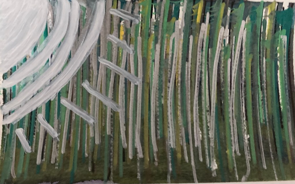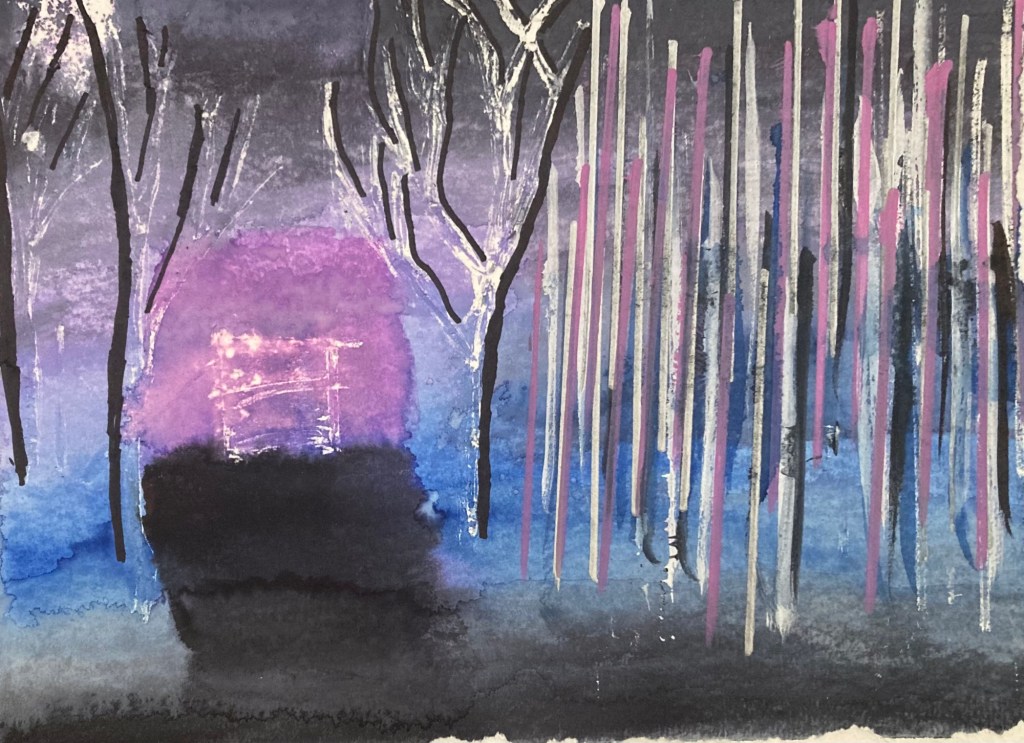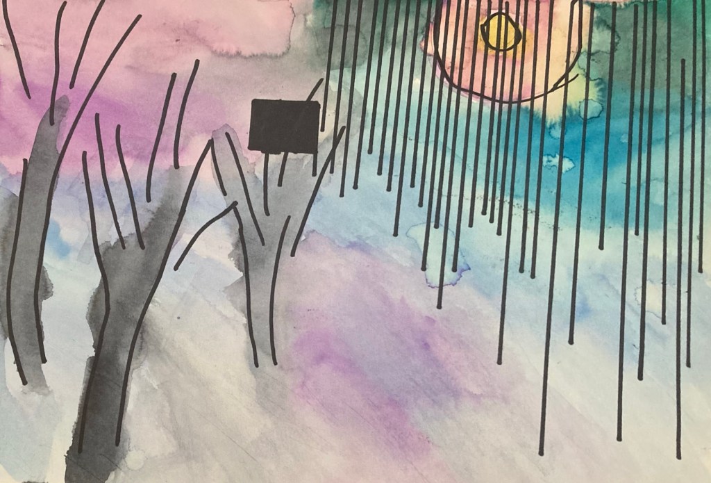 Artwork by L. Cohen, summer 2025. As I started to compile the chapbook I decided to explore the visual aspects of this project by getting out art supplies and playing around.